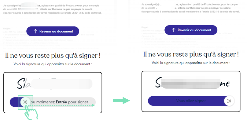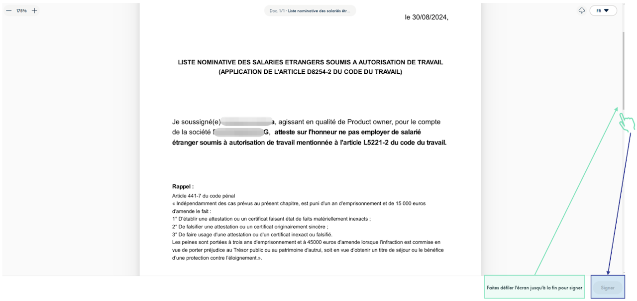 Once the document is viewed, you must scroll to the bottom of the page then click on the "sign" button which triggers the sending of your code.