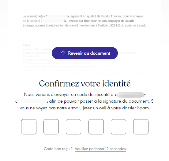 After having validated the method of receiving your code, you will be redirected to a new "Yousign" page, which will allow you to view the document before signing it.